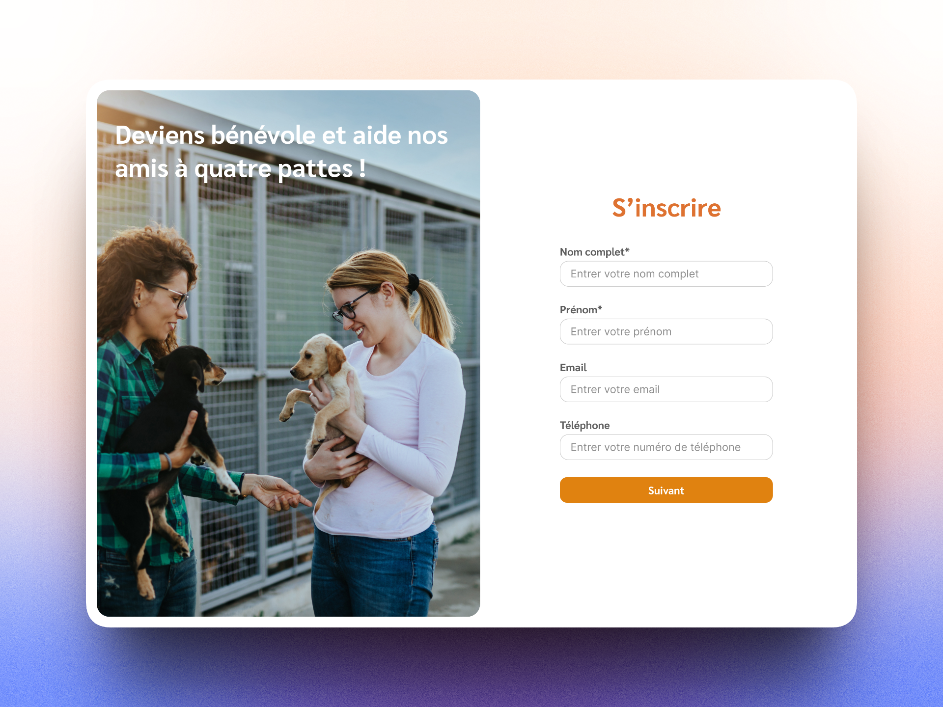 Un formulaire pour devenir bénévole dans un refuge pour animaux.